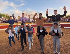 David Pardo -Escuela Taurina de Murcia- sale a hombros en Pinarejo junto a los demás actuantes de otras escuelas taurinas.