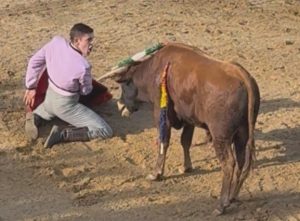 En primer lugar actuó David Pardo, de la Escuela Taurina de Murcia “El Toreo”, consiguió conectar con una afición entregada toda la tarde, en una actuación en su línea de entrega pero más asentado, firme y templado que en otras ocasiones; intercaló naturales y derechazos de trazo largo y cadenciosos con un final en el que hubo todo tipo de adornos que hicieron las delicias del respetable, Tras un pinchazo recetó una gran estocada que acabó sin puntilla con el buen novillo de Apolinar, siéndole otorgadas dos orejas.