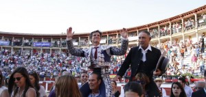 MADRID. Domingo, 7 Junio 2015. Publicado en APLAUSOS.es Por Iñigo Crespo. Foto.- Fran Jiménez.Rafaelillo protagonizó ante el cuarto una gran faena. El de Miura fue un toro bueno, que sacó fondo y fue a más durante la lidia. Tuvo un buen pitón izquierdo, por donde descolgó dentro de la exigencia habitual de la casa Miura. El murciano anduvo muy dispuesto y entregado desde el principio. Saludó al toro con una larga cambiada y arrancó la faena de muleta también de hinojos. La labor fue creciendo, al igual que el toro, en intensidad; y tuvo momentos de mucha ligazón y ritmo por los dos pitones, especialmente por el izquierdo, por donde toreó con reunión, mano baja y corriendo bien la mano. Intercaló series de planta erguida y abandonada con otras de compás abierto, rota la figura, y otras citando a pies juntos. Todo muy emotivo, llegando con mucha fuerza al público. Sin duda, una de las faenas de la feria. Dos pinchazos en la suerte contraria y una estocada en la suerte natural redujeron el premio a una clamorosa vuelta al ruedo que Rafaelillo dio entre un mar de lágrimas.Abrió plaza un toro sin fuerza, lidiado en medio de una protesta monumental por la negativa del presidente a devolverlo a los corrales. Ante semejante material, Rafaelillo no tuvo opción en medio de las palmas de tango del público. Mató de media estocada.