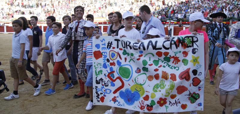 “Torea al Cáncer”, pancarta que paseó El Juli junto a emocionados niños afectados por la enfermedad. El gran triunfo de la tarde fue el ejemplo de El Juli, sus cuadrillas y todos los que colaboraron por tan noble causa….
