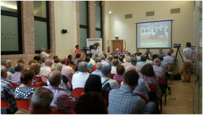 MADRID. Domingo, 7 Junio 2015. Remitido: Prensa–C.T.CALASPARRA-En la mañana de hoy el Club Taurino de Calasparra ha protagonizado la agenda cultural del día en la plaza de toros de Las Ventas de Madrid, con la presentación del vídeo divulgativo “Calasparra y los toros una pasión”. Al finalizar la proyección, ha recibido una gran ovación por parte del público que ha llenado por completo la Sala Cossío.