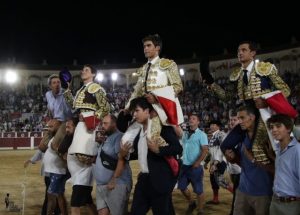 Trigueros, una tarde de incontrolables emociones con final feliz, su alternativa soñada con salida a hombros con dos figuras del escalafón, Sebastian Castella y Tomas Rufo, que indultaba a su primero.