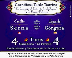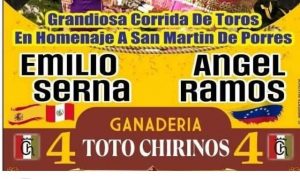 Emilio Serna con Morenito de Aranda y Diego Garcia, en San Marcos (Perú). Miercoles 15 de octubre de 2025.