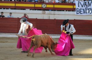 En esta ocasión, al novillero de la escuela taurina de Murcia, Ivan de Benito le correspondió el garbanzo negro del festejo, ya que después de realizar con el capote lances de un gusto exquisito y nada más comenzar su faena de muleta, el novillo se cerró en las tablas y no hubo forma de sacarlo de allí, poniéndose prácticamente imposible y dificultando mucho el entrar a matar, solicitando el público a Ivan que diese la vuelta al ruedo, lo que hizo entre una gran ovación.