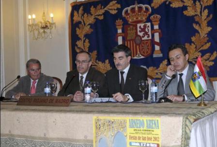 MADRID, 22 febrero PUBLICADOen Lainformación.com -Agencia EFE.- El alcalde de Arnedo (La Rioja), Juan Antonio Abad, ha presentado hoy en Madrid la Feria Taurina San José 2012 de su ciudad, «una apuesta ejemplar por lo taurino y por los alicientes que ofrece nuestra tierra para un fin de semana de auténtico disfrute», los días 17 y 18 de marzo próximo.