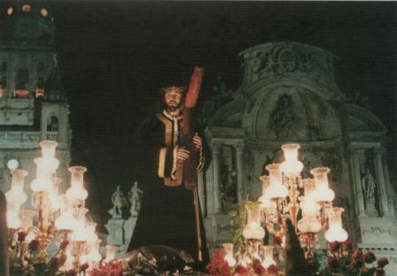 Conocido como »EL CRISTO DE LOS TOREROS»,portado ahombros en procesión portoreros murcianos y conocidos representantes del mundo del toro en Murcia. Viernes de Dolores.