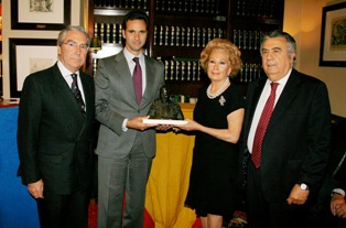 Remedín Gago, la viuda de Manolo Vázquez, fue la encargada de entregar el premio del Aero a Álvaro Núñez Benjumea.