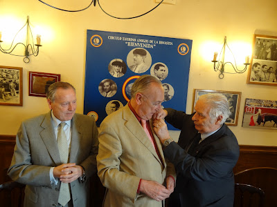 MADRID. Viernes, 25 Mayo 2012.-El «Cuarto Bienvenida» del restaurante «Gambrinus-Vergara» fundado y regentado por Don Miguel del Valle, ha sido el marco donde la Junta Directiva del Círculo Bienvenida y un nutrido y representativo grupo de socios y amigos le ha ofrecido un justo y emotivo tributo de reconocimiento y afecto a una figura egregia como Don Felipe Díaz Murillo que ha regido los destinos de la Escuela de Tauromaquia «Marcial Lalanda» de Madrid durante tres décadas alcanzando las máximas cotas de prestigio y aportación a la Tauromaquia para su mayor gloria engrandecimiento.