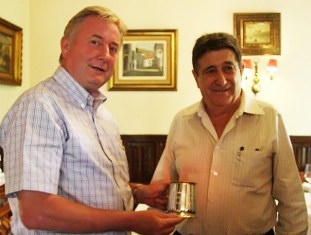 DAVID MORA recibió la tradicional »Jarra» de manos de Mr. Mark Rayner -Pte. del Club Taurino de Londres.