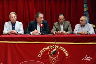 MURCIA. Lunes, 11 Junio 2012. Informa.- Paco Sastre. Fotos.- http://www.feriataurina.es/ Rafael Cebrián, como Presidente del la citada Escuela, acompañado de los dos Vicepresidentes- Ángel Bernal, en representación de Toros Sureste y Alfonso Avilés, en representación del Club Taurino de Murcia, han comparecido ante los medios de comunicación presentes junto al diestro Pepín Liria, a fin de informar de la incorporación del torero de Cehegín como nuevo Director Artístico de la misma, enmarcada esta dentro de una renovación total del equipo de trabajo.