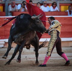 1º)Rafaelillo ha sido ovacionado con el toro de Miura que abrió plaza en Pamplona. El toro, que se quedó corto y soltó continuamente la cara por los dos pitones, impidió que el murciano pudiera lucir, pero el torero puso de manifiesto su tesón y voluntad en una aguerrida faena, en la que incluso a punto estuvo de ser prendido en varias ocasiones. Mató de buena estocada volcándose a la hora de hacer la suerte. 4º) Muy complicado fue el cuarto, que se quedó corto en sus viajes y buscó, miró y midió al torero en todo momento. Rafaelillo, tras intentarlo, terminó lidiándolo sobre las piernas y matándolo con gran eficacia. Lo mejor, que salió indemne de la dificultosa lidia.