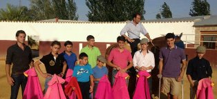 REMITIDO.- Los alumnos de la Escuela de Tauromaquia de la Región de Murcia participaron ayer en un entretenido tentadero en la ganadería «El Pocico», en la finca del novillero lorquino Miguel Ángel Moreno.Junto al director artístico de la Escuela, el maestro Pepín Liria, los nueve alumnos tuvieron la oportunidad de ponerse delante de un total de cuatro vacas, por lo que la jornada se prolongó durante mas de tres horas, resultando de lo más provechosa.