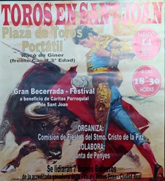 SAN JUAN (Alicante). Festival a Beneficio de CÁRITAS, con »EL DANI» de director de lidia. Sábado 14 de Julio / Informa.- Benito Sánchez Leyva