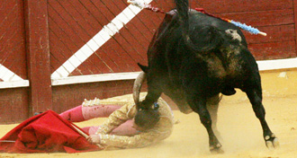 TUDELA (Navarra). Miércoles, 25 Julio 2012. Publicado en APLAUSOS.es. Conchi Ríos resultó volteada por el segundo novillo del festejo que se está celebrando en Tudela. La novillera murciana recibió una aparatosa voltereta cuando se perfilaba para entrar a matar. El novillo de Manuel Ángel Millares hizo por ella, y ya en el suelo, el animal se enceló con la murciana, recibieno un fuerte pisotón en la cara. Pasó a la enfermería donde fue intervenida bajo anestesia local de una cornada en el muslo derecho de siete centímetros de abertura y diez de profundidad, mientras que en el muslo izquierdo sufre otra de siete centímetros de abertura y quince de profundidad. Al parecer, en la zona de la pantorrilla izquierda hay una tercera cornada que provoca destrozo muscular.