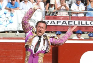 Rafaelillo no le volvió la cara al primero de la tarde, un toro de Miura que se dejó hacer las cosas con cierta nobleza en los primeros tercios. Ya en el tercio de muleta, el toro se quedó cada vez más corto y repuso con cada vez mayor velocidad. El torero lo muleteó con firmeza y lo pasaportó con un estoconazo fulminante. Hubo de recurrir a la tauromaquia de piernas e inteligencia frente al cuarto, una ‘prenda’ de Miura que estuvo siempre con el torero, que repuso buscándolo y que no sólo no humilló, sino que descolgó. Tras un molinete, el toro repuso y lo izó por los aires, infiriéndole lo que parece un puntazo en la parte posterior del muslo derecho. Tras el percance, Rafaelillo le obligó a tragarse dos series meritísimas por la dificultad que entrañaron. A pesar de pinchar, cortó una oreja que le abría la Puerta Grande.
