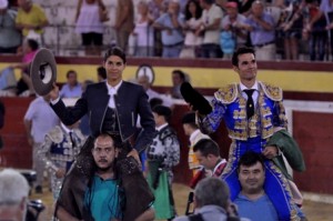 CALASPARRA (Murcia). Miércoles, 30 Julio 2014. Festejo de Los Santos. Texto.- Pepe Castillo Abreu. Fotos.- TNM.com.Tarde de las que hacen afición, buen ambiente y, con más de media entrada del aforo, el respetable salió contento; aunque tarde, eran las 22 horas, cuando Puerta y Lea daban a hombros la vuelta al ruedo, los rejones siempre prolongan, pero el festejo comenzó con más de veinte minutos de retraso. Puerta, gran protagonista de la tarde, estuvo francamente bien en sus dos novillos toros, en faenas muy distintas por el juego de los