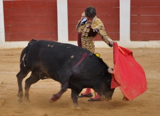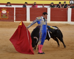 astados. A su primero lo paro luciéndose con el capote. Brindó a su amiga Leticia Rico. Y se fue al centro del ruedo, los ajustados pases cambiados por la espalda ya fueron toda una declaración de intenciones. La faena fue a más con tandas en redondo bajando la mano y sometiendo a un cuajado y noble novillo al que sometió de inicio a fin. La Caverina tiene un público que sabe corresponder, y los olés y las ovaciones tuvieron fuerza. Fue una faena muy seria de novillero para alternativa, donde brilló el poder y la firmeza, además del valor y buen concepto. Se adorno con dos doblones para perfilarse y entrar a matar con rectitud y en la alto. Cobró una estocada entera sin puntilla que hizo rugir La Caverina. Dos orejas y rabo. En el que cerró plaza, Puerta no pudo desarrollar toda su tauromaquia y tuvo que cambiar el guión. No le permitió lucirse este novillo con el capote, que se lo arrancó en un derrote. Ya le avisó, se le quedaba corto y se orientaba. Tras un puyazo se cambió el tercio. Porfió Puerta y en un ajustado quite por gaoneras se escapó por un milimetro. No tuvo oponente el ceheginero, y tuvo que hacer todo un esfuerzo baldió en lo artistico. Pero se le reconoció el esfuerzo, por su insistencia en intentar lo imposible. Todo fue insistir en la corta distancia y en el arrimón, y arrancó algunos muletazos sueltos. Prolongó en exceso. La actitud, y otro estoconazo de ley en la yema, letal y sin puntilla, se premiaron con fuerte petición de máximos trofeos que el palco concedió. El local Juan Gabriel estuvo realmente digno, pero se le nota la falta de rodaje. En su