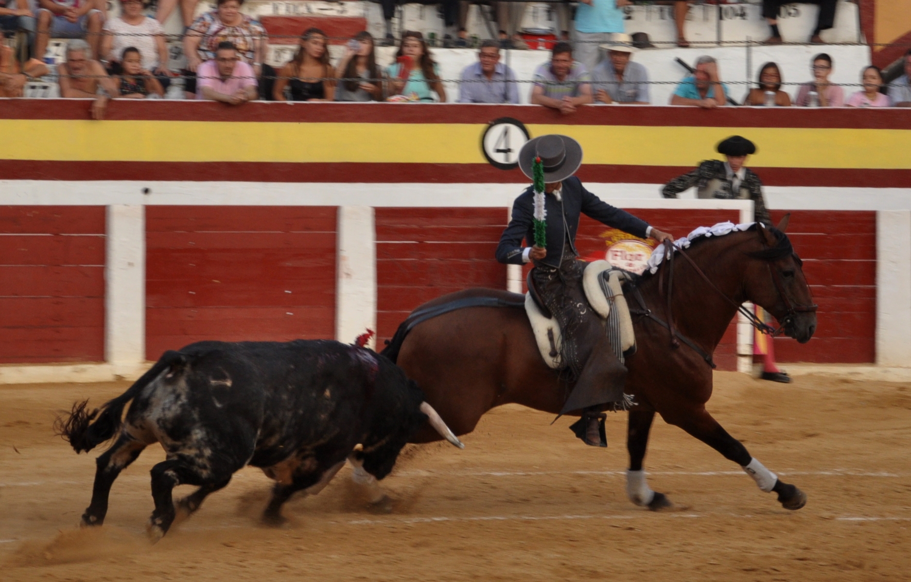 primero, larga cambiada con peligro al quedarse el novillo debajo y le apretó. Ya se le observó un comportamiento extraño al de Daniel Ruíz. En el trasteo inicial sufrió un desarme, pero Juan Gabriel descubrió el buen pitón izquierdo, por el que centró una faena corta, las tandas por naturales fueron muy aplaudidas. No volvió a intentarlo por el pitón derecho. La obra, claro, quedó incompleta. Tras pinchazo, estocada casi entera. Una oreja. En su segundo el calasparreño no consiguió acoplarse. La faena transcurrió sin pena ni gloria, pero con la mayor dignidad, mereciendo un respetuoso silencio. Lea Vicens, joven rejoneadora, bajo la tutela del gran Ángel Peralta en el callejón, agradó y mucho, además de por su natural simpatía, porque su especial elegancia y torería a caballo o a pie es algo que no pasa desapercibido ni al más corto de vista. Valor y riesgos conjugó y asumió; tuvo suerte, mucha suerte, durante distintas fases de sus dos actuaciones, de no sufrir mayores consecuencias, le tocaron los astados sus cabalgaduras y pasó apuros que no le hicieron arredrar. Tiene un largo camino por recorrer para lograr sus objetivos, pero maneras y decisión derrocha. De otra parte, reseñar los muchos seguidores de Puerta de su natal Cehegín, con su alcalde, Paco Abril, el concejal Paco