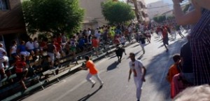 CALASPARRA (Murcia). Viernes, 5 Septiembre 2014. Redacción. Con puntualidad suiza, las 10 h. de la mañana, se ha disparado el cohete, que abría la puerta de los corrales que separan los 923 metros de la Plaza de Toros. Los novillos de Lagunajanda, que debutan hoy en Calasparra, han salido agrupados junto a los cabestros, pronto un novillo negro ha tomado la delantera, haciendo en solitario todo el recorrido, ha sido descarado en su veloz carrera, retando a quién se atreviera ponerse a su paso. La carrera ha sido muy abierta, este novillo en solitario, separado unos 20 metros del resto, le seguían otros tres, y por último los dos restantes lagunajandas. Cuatro negros y dos castaños. En principio, no hay que lamentar percances. La duración desde los corrales hasta que han pisado el albero de plaza ha sido de 1′ 57», allí el descarado negro con el público de los tendidos, buscaba gresca, se ha rezagado para entrar a los corrales de la plaza, haciéndolo a los 3′ 59».