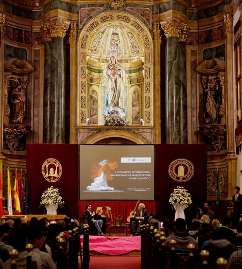 MURCIA. Lunes, 8 Diciembre 2014. -Festividad de la Inmaculada- Texto.- Pepe Castillo Abreu. Fotos.- Paco Manzano. El pasado jueves se clausuraba el V Congreso Internacional Universitario de Investigación sobre Flamenco, organizado por la UCAM y Fundación Cante de Las Minas, que del 2 al 4 de diciembre se ha celebrado en el Campus de Los Jerónimos –Universidad Católica (UCAM)-, en Murcia. Han sido tres días intensos en el que se ha cumplido el ambicioso y completo programa, que ha reunido a los ponentes más autorizados, en las distintas materias que se han abordado en las brillantes conferencias y actividades desarrolladas. En la clausura, tenían especial natural atractivo la presencia del matrimonio