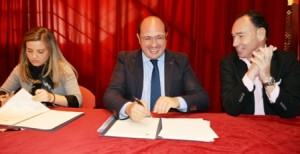 MURCIA. Jueves, 29 Enero 2015. Informa.- Amparo Lucas. El consejero Pedro Antonio Sánchez, y la presidenta de la Escuela de Tauromaquia, Rocío Bernal, firmaron hoy este acuerdo que implica la organización por ambas instituciones de iniciativas en las que participarán maestros, alumnos y colaboradores de la escuela para la promoción y protección de la tauromaquia.
