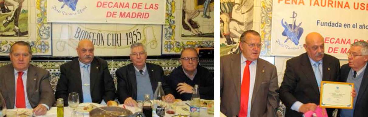 La Peña Taurina “Usera”, (fundada en el año 1.944) y Decana de las de Madrid, ha rendido hoy un Homenaje y nombra AMIGO DE LA DECANA a D. Rafael Pino Pérez, Presidente de la Peña Taurina “El Porton” y Secretario General de la Real Federación Taurina de España.