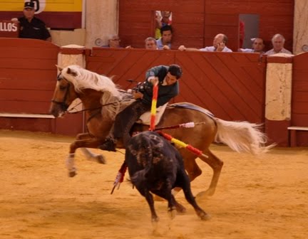 Pedro ha estado muy acoplado con sus cabalgaduras. Su ultima incorporación, un potro con el hierro de Pablo Hermoso de Mendoza se va compenetrando perfectamente a las exigencias del toreo del rejoneador murciano. En su primer toro el rejón ha sido de efectos fulminantes. En su segundo astado el rejón también ha sido muy efectivo, pero el animal se ha amorcillado, lo que obligó al jinete a descabalgarse para descabellar. Acertó a la segunda con el verduguillo lo que le ha hecho no obtener la segunda oreja, pese a la petición unánime del respetable. Tras finalizar la corrida El Cartagenero se ha encontrado bastante mejor de sus lesiones del pie, siendo en la tarde de hoy menos dolorosas que en tardes anteriores.