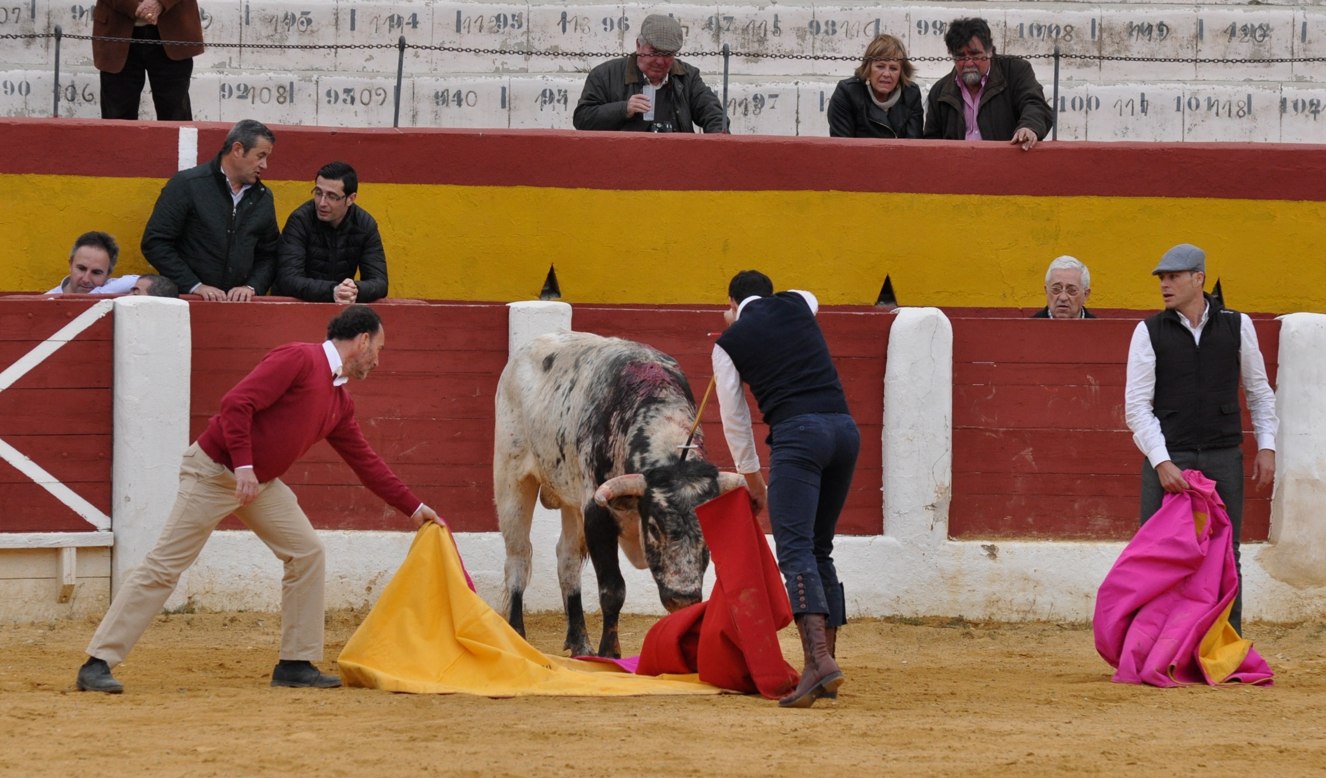 parado, quedó muy mermado tras un fuerte volteretón de recibo, fue al que pudo arrancarle algunos muletazos ajustados de largo trazo, pero a base de consentirle y aguantarle en exceso, desarrolló peligro y llegó a producirse una avisada cogida sin consecuencias. El segundo un burraco de feas hechuras y zancudo, salió con pies pero pudo lastimarse en el puyazo y fue imposible hacerle nada, tan solo intentarlo lidiando sobre las piernas. Con la espada estuvo certero. Se aplaudió el esfuerzo.Asesorándole y capote de brega en mano contó con el Maestro Líria, acompañado de los subalternos Carlos Pacheco y Antonio Cama;sin olvidar al propio JuanReverte que también desde el callejón le hizo oportunas y acertadas observaciones. En definitiva, seguro le servirá a Puerta de cara a su inminente compromiso en Murcia el próximo 22 de marzo, en el XXI Festival Taurino de la Lucha Contra el Cáncer, donde hará el paseíllo junto a las figuras acarteladas este año.