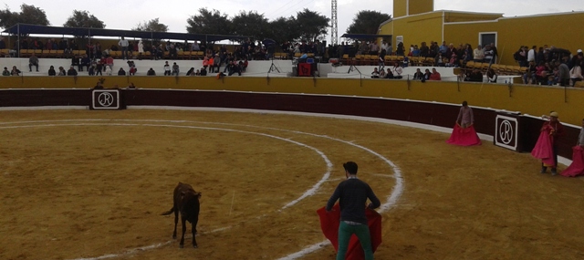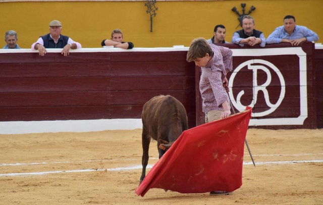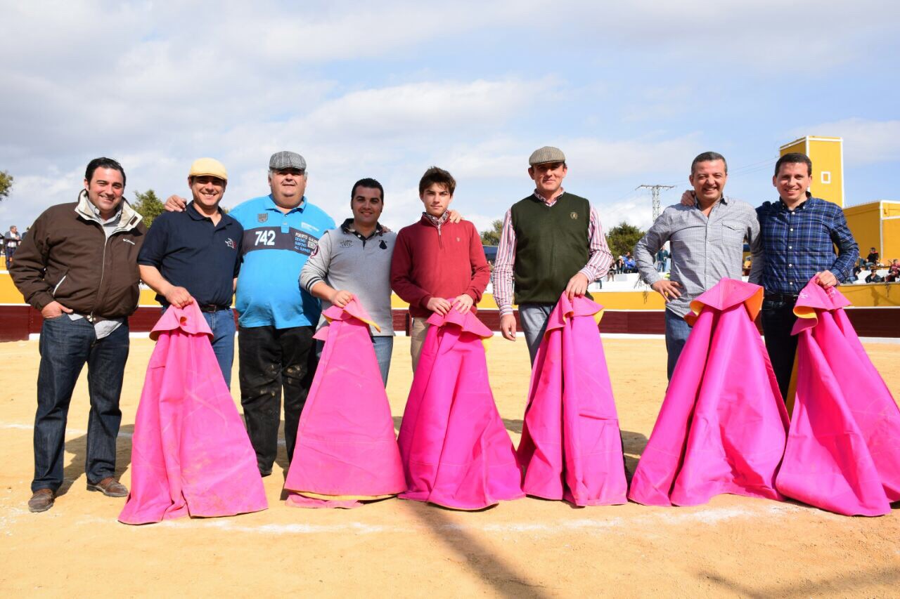 Roca, José Manuel Madrid y Antonio Fuentes.Lo cierto es que hasta la lluvia, que hizo acto de presencia a media mañana, no aguó la fiesta, bien al contrario, fue por un momento colaboradora y el mejor y preciso riego siempre necesario en el ruedo. Desde las 10 de la mañana, todo se sucedió según lo programado y sin problemas en ningún sentido. Para los más peques el castillo hinchable y juegos, entre los que destacar, el encierro infantil. Ya, después, para los jóvenes y menos jóvenes más atrevidos se soltaron varias becerras que dieron buen juego y para los más puestos momentos de lucimiento muy jaleados por el numeroso público que llenó las gradas de la coqueta plaza «Carmen Alba».Destacar la actuación de Manolo Guillén,«que está en plan de volver a enfundarse el terno de luces»;llamó la atención con unos
