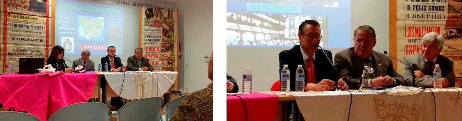 ALMAGRO (Ciudad Real). Sábado, 18 Abril 2015. Remitido.- Prensa-R.F.T.E. Ayer en Almagro, dentro de las Jornadas Culturales que organiza la Peña Taurina CurroRomero, nuestro Presidente D. Mariano Aguirre Díaz dio el Primer Pregón Taurino en esa bella Ciudadmanchega y a continuación desgranó con todo lujo de detalles la conferencia audiovisual
