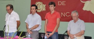 BLANCA (Murcia). Domingo, 16 Agosto 2015. Redacción. El Centro Cultural «Miguel Angel Fdez. Abenza acogió un año más los tradicionales «Aperitivos Taurinos» organizados por el Círculo Taurino de Blanca que preside Pedro Molina. El del viernes fue suspendido por el luto oficial declarado en la localidad. Se guardó minuto de silencio por el fallecido en el encierro del viernes.El sábado y domingo se celebraron con gran afluencia de público. Así, el sábado tuvo por protagonistas al novillero castellonense Jonathan Blázquez Rovira «Varea» y por el ganadero Salvador García Cebada -Cebada Gago-, que lidiaba la misma tarde la segunda de abono. Tras la presentación de Pedro Molina -Pte. de Círculo Taurino de Blanca-, la tertulia estuvo moderada por Juan Francisco Martinez -Canal 8 Tv.-