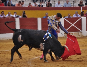 verónicas con ajuste, chicuelinas y remate del desdén. En la muleta, a pesar de la nula colaboración de su oponente y no poder bajarle la mano, los muletazos fueron buenos por ambos pitones, intercalados con molinetes. Estocada entera. Oreja y petición. El 5º lo recibió con mecidos lances, se adornó con vistosas lopecinas y espectacular serpentina siendo muy aplaudido. Con un toro parado y poco colaborador, hizo el granadino todo el esfuerzo para lucirse en banderillas y pidió permiso al palco para poner un cuarto par. Resaltar toda la voluntad y esfuerzo en la faena de muleta con el toro muy parado, consiguiendo lo que era imposible, agradar y ganarse el beneplácito. Cerró con bernardinas. Con el público de su parte, sabía Fandi que si acertaba con la espada salía a hombros. Se perfiló, tomó su tiempo para no fallar, y volcándose con rectitud y arriba cobró una gran estocada. Dos orejas.