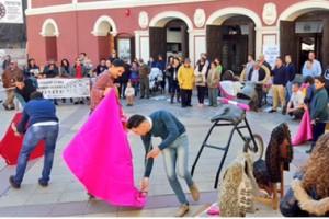 LORCA (Murcia). Lunes, 30 Noviembre 2015. Prensa-C.T.Lorca. Ayer domingo la Plaza Calderón, junto al emblemático Teatro Guerra, en pleno corazón de Lorca, fue más taurina que nunca. En un improvisado ruedo, el torero lorquino Miguel Ángel Moreno y el novillero revelación de la temporada 2015 en la Región de Murcia, José Manuel, dictaron lección de toreo a una concurrida plaza, que se mostró muy receptiva con las enseñanzas de los toreros.