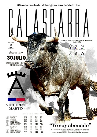 Aprovechando que este año se conmemora el 50 aniversario del debut ganadero de Victorino Martín, que tuvo lugar precisamente en Calasparra, esta mítica ganadería será la gran protagonista de la programación, con presencia en la corrida del 30 de julio en el mismo formato de hace 50 años.