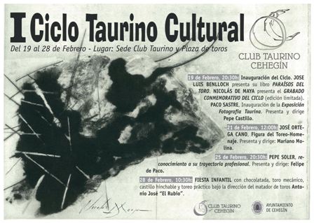 CEHEGIN (Murcia). Lunes, 25 Enero 2016. Redacción.- Para este I Ciclo Taurino Cultural, que se celebrará en la nueva Sede Social, ubicada en los bajos del Centenario Coso Don Pepe Navarro y en el propio coso. El Club Taurino de Cehegín ha desarrollado el siguiente Programa: