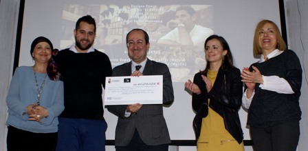 CALASPARRA (Murcia). Sábado, 20 Febrero 2016. -Prensa-Calasparra-El Ayuntamiento de Calasparra y el colectivo «Calasparra se mueve» han hecho entrega hoy de la recaudación por la venta de los calendarios taurinos solidarios al Grupo de Investigación Translacional del Cáncer. Francisco Ayala de la Peña, Jefe de sección de Oncología Médica del hospital Morales Meseguer, junto a miembros de su equipo, ha recogido el cheque por valor de 4.017 euros.