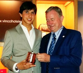 MADRID. Domingo, 5 Junio 2016. – Prensa Club Taurino de Londres – Mike Penning – El matador de toros Andrés Roca Rey fue premiado por el Club Taurino de Londres como el mejor novillero de la temporada 2015.