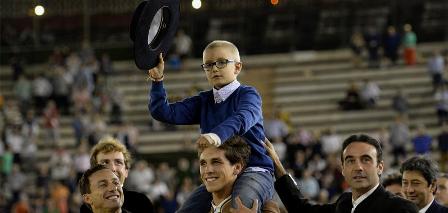 Valencia, sábado 8 de octubre de 2016. Publicado en Aplausos – JOSÉ IGNACIO GONZALEZ – Festival a beneficio de la Fundación de Oncohematología Infantil -FOI-. Novillos, por este orden, de Luis Algarra, Daniel Ruiz, Las Ramblas, Fuente Ymbro, El Freixo, Domingo Hernández y Fuente Ymbro. Vuelta al ruedo en el arrastre al 6º, «Violín», número 18, castaño bocidorado, nacido en febrero de 2013, de Domingo Hernández.Vicente Ruiz “El Soro”, dos orejas; Enrique Ponce, dos orejas tras aviso; Vicente Barrera, dos orejas; Rafaelillo, dos orejas tras aviso; Román, oreja; Ginés Marín, dos orejas y rabo; y el novillero Fernando Beltrán, oreja tras aviso. Entrada: Media plaza. El niño Adrián hizo el paseíllo con los toreros actuantes y, tras el mismo, sonó el himno de Valencia y todos fueron obligados a saludar por el público. Al término del festejo, Adrián fue sacado a hombros por los toreros. LEER MÁS