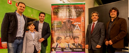 ARNEDO (La Rioja). Martes 14 Febrero 2017.– Prensa-T.E. – Tauroemoción ha presentado en el Teatro Cervantes de Arnedo el cartel de las Fiestas de San José 2017. Curro Díaz, Paco Ureña y Varea harán paseíllo en el Arnedo Arena con una corrida de Victorino Martín el sábado 18 de marzo a las 17.30 horas. El hierro de la “A coronada” lidiará por primera vez en la ciudad riojana una corrida de toros. Concluido el festejo, el becerrista calagurritano Alberto Donaire se presentará en Arnedo tentando una becerra.
