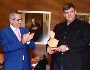 LA UNIÓN. Jueves, 3 de Julio 2017. -Prensa-FICM – Fotos.- TNM – El alcalde de La Unión y presidente ejecutivo de la Fundación Cante de las Minas, Pedro López Milán entregó el premio Asensio Sáez a la Asociación Cultural El Malacate por su labor multidisciplinar.