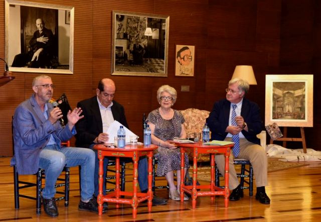 Asensio Sáez cuando tras la conferencia ha comenzado una amena mesa redonda a cargo de F. Javier Díez de Revenga (Catedrático emérito de la UMU), Mª Teresa Cervantes (Escritora), Tomás Albaladejo (Catedrático de la UAM), coordinada por José Belmonte (Profesor de la UMU, crítico literario de La Verdad), en la que todos alabaron la calidad de la obra del escritor , emplazando a la Fundación a realizar un congreso internacional sobre Asensio Sáez.