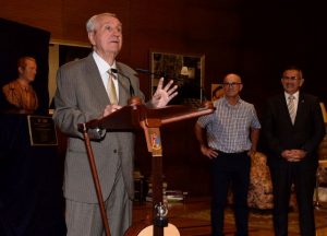 LA UNIÓN (Murcia). Viernes, 4 de agosto 2017. -Prensa-FICM – Esta tarde, en el salón de actos de la Casa del Piñón se ha mostrado al público, la escultura realizada por el imaginero unionense Galo Conesa, una obra creada en barro que muestra la imagen de Esteban Bernal en los años 70. La obra descubierta por el artista y el protagonista ha causado sorpresa al propio homenajeado, que emocionado se ha quedado sin habla porque “verme en otro material impresiona”, ha ironizado.