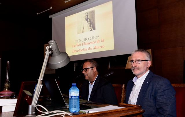 Hoy viernes, se puede decir que estuvo dedicada al cantaor. Una conferencia bajo el título ‘La voz flamenca de la desolación del minero’ presentada por el técnico de Cultura del Ayuntamiento de La Unión, Manuel Navarro y José Francisco Ortega, profesor de la Universidad de Murcia, ha puesto de manifiesto distintos aspectos biográficos de la vida del cantaor que se ha acompañado de una gran cantidad de archivos audiovisuales y fotográficos. El ponente Manuel Navarro ha recordado que Pencho Cros aprendió a cantar mineras oyendo a los mineros. Sus grandes pasiones fueron, según Navarro, La Unión y el cante.