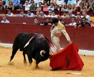 imposible con un toro manso y rajado que salía despavorido y con peligro huyendo de principio a fin hacia la puerta de toriles. Tras pinchazo estocada. Ovación con saludos. Pitos en el arrastre. El quinto salió con distintas condiciones a su primero y Manzanares pudo lucirse en el recibo. Toro que tuvo fijeza de salida y acudia con prontitud, todo quedo en eso. En la muleta el cambio fue radical, pensó Manzanares que podía remontar la tarde pero le fue imposible con este toro que engaño de salida. Volvio el alicantino a intentarlo y pudo dar buenos muletazos por el piton derecho en el inicio, pero todo quedo en eso, el toro se paro no permitiendo tandas ligadas. El silencio en los tendidos lo decía todo. Tuvo que renunciar a mas intentos. Estocada entera que escupió. Ovacion con saludos y algunos pitos.