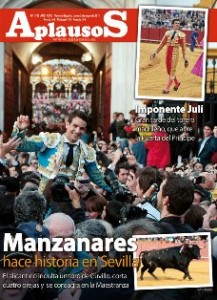 REMITIDO REDACCIÓN APLAUSOS. La memorable tarde de Manzanares, premiada con cuatro orejas y el indulto de Arrojado, de Núñez del Cuvillo, y la gran tarde de El Juli, copan el protagonismo en la portada del número de APLAUSOS de esta semana. Sus éxitos, concluidos ambos con Puerta del Príncipe, han sido los más sonados de una Feria de Abril que se analiza al detalle en el semanario.