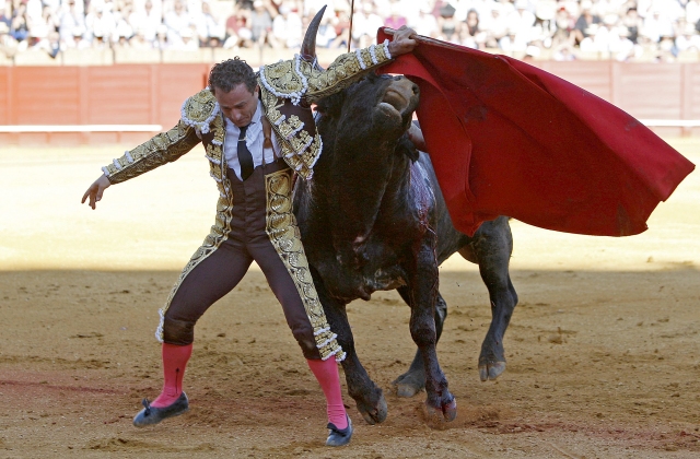 SEVILLA.- DOMINGO, 8 MAYO 2011. PUBLICADO EN www.diariodenavarra.es AGENCIA EFE. J. M. NÚÑEZ. Pero le prendió el miura en el primer envite con la espada, zarandeándole por el antebrazo. Asombroso que no le metiera el pitón. Y cuando acertó a la siguiente, la petición de oreja fue menor de lo que se esperaba y merecía.