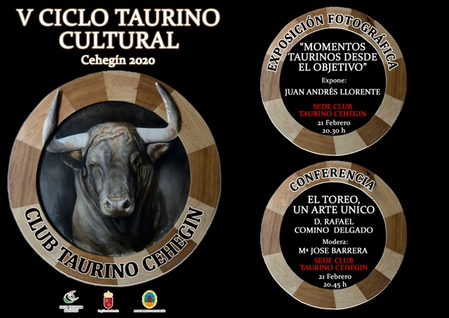 CLUB TAURINO DE CEHEGIN. – «V CICLO CULTURAL TAURINO» – Actos Programados para el próximo Viernes, 21 de febrero de 2020.