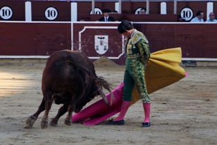 PABLO BELANDO tuvo una excelente actuación en sus dos novillos, perdió trofeos con la espada y sufre cornada de 10 cms. ascendente.Las orejas al local ALBERTO POZO fueron «regalo» del palco.