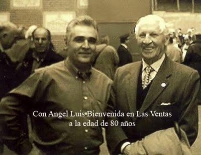 A la sombra de un ciprés esa fue la sensación que percibí el día que conocí al maestro Ángel Luís Bienvenida y me fotografié a su lado. A la edad de 80 años en aquella Feria de Otoño de Madrid, el torero Ángel Luís, componente de una de las dinastías con más solera del orbe taurino de todos los tiempos, los “Bienvenida”, mantenía su esbelta figura preñada de torería, alto y derecho como el árbol mencionado.