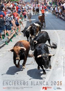 Este año estos eventos taurinos tendrán lugar el 9, 11, 13, 14 y 15 de agosto y entre ellos figuran un encierro juvenil y un encierro nocturno. El diseño del cartel es obra de Sebastián Guillamón.